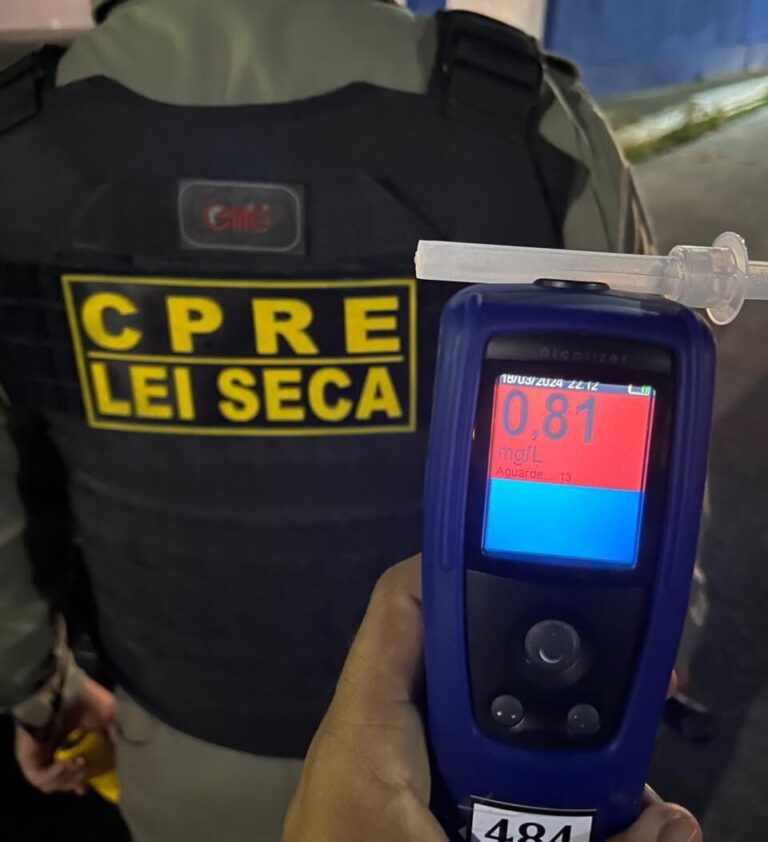 Em São Gonçalo do Amarante, um homem de 44 anos foi abordado dirigindo de forma temerária na área central da cidade. O teste apontou 0.50mg/l, configurando crime.