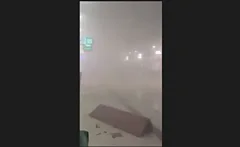 Legenda do vídeo, Vídeo mostra fumaça e danos em aeroporto de Dubai