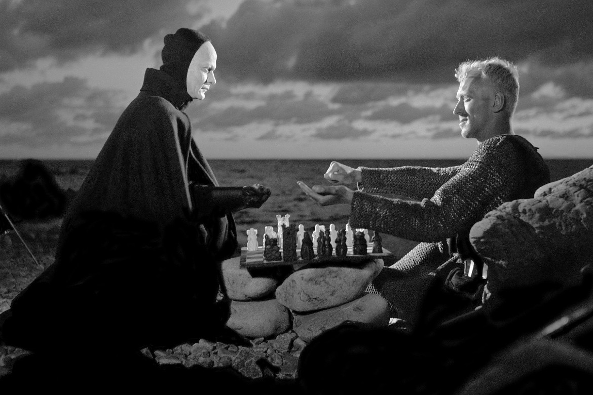 A primeira imagem que me ocorre é a que abre o post. O cavaleiro que volta das cruzadas e joga xadrez com a morte. O Sétimo Selo, obra-prima de Ingmar Bergman.