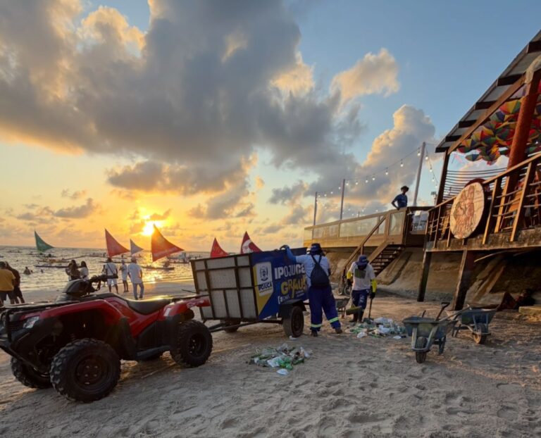 A Prefeitura de Ipojuca realizou uma operação especial de limpeza urbana durante o Réveillon 2026 em Porto de Galinhas, diante do aumento do fluxo turístico no período. A ação teve como objetivo manter a organização, a limpeza e as condições adequadas para moradores, comerciantes e visitantes em um dos momentos de maior movimentação do balneário.
