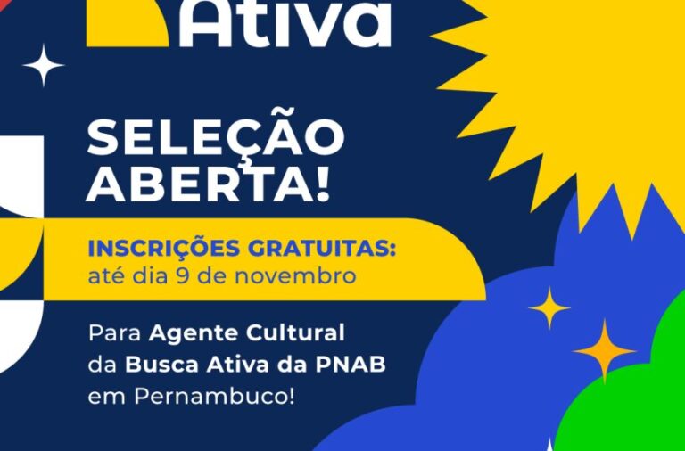 O Governo de Pernambuco, por meio da Secretaria de Cultura de Pernambuco (Secult-PE), abriu seleção simplificada para contratar agentes culturais que vão atuar na Busca Ativa, ação focada nos editais do Ciclo 2 da Política Nacional Aldir Blanc (PNAB). As inscrições são gratuitas e ficam abertas até 9 de novembro, exclusivamente em buscaativape.com.br. A iniciativa garante apoio prático, da inscrição à prestação de contas, nas 12 Regiões de Desenvolvimento, com atenção especial a quem tem menos acesso à tecnologia e suporte técnico, para qualificar as propostas e ampliar as chances de aprovação nos editais da PNAB. O Instituto Trocando Ideia de Tecnologia Social Integrada será o responsável pelo processo seletivo.