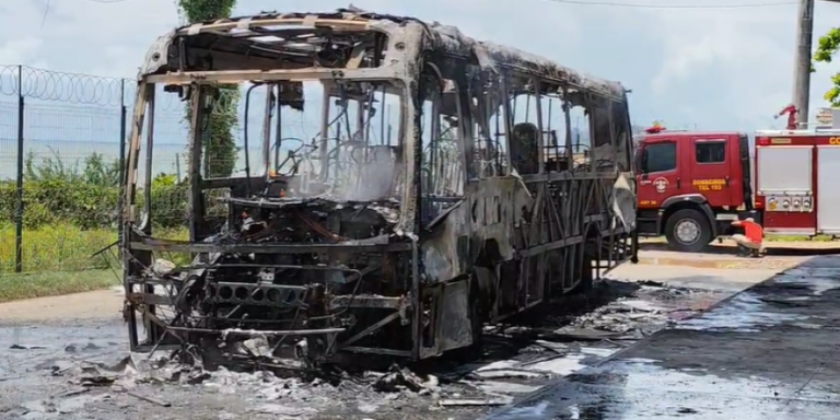 ônibus pega fogo no Terminal da Praia Grande