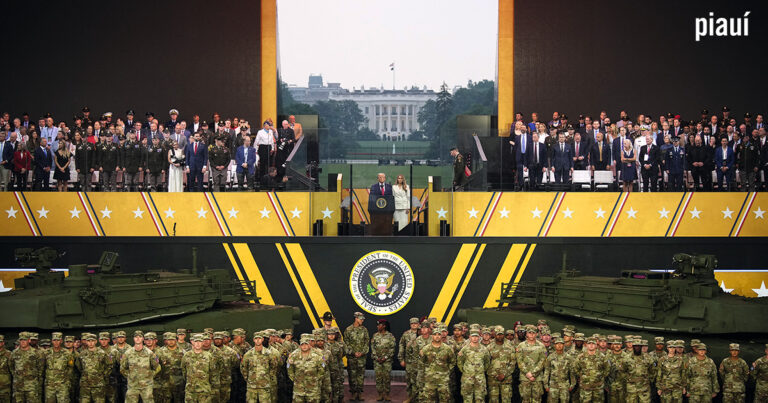 A escritora enumera as decisões de Trump logo depois da posse, em janeiro: “Em questão de dias, são apa­gadas 8 mil páginas de sites do governo com programas educativos, benefícios para veteranos, pesquisas científicas e in­formações sobre vacinas. Perdoa os envolvidos no ataque ao Capitólio em 6 de janeiro de 2021. Cancela o programa de retirada das bombas inativas no solo de países como Iraque e Ucrânia. Sugere realocar a população de Gaza no Egito e na Jordânia. Começa a prender imigrantes e fala em retomar o controle do Canal do Panamá. Sugere comprar a Groenlândia (que nun­ca esteve à venda) e decidiu mudar o nome do Golfo do México (que não pertence aos Estados Unidos) para Golfo da Améri­ca.”