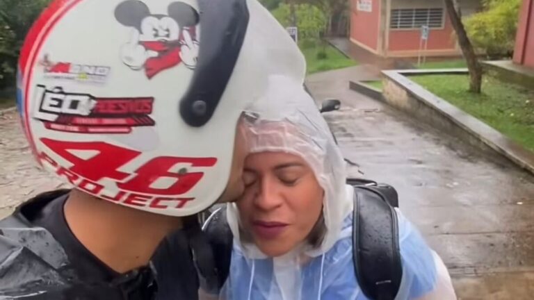 “Primeiro dia de aula da minha mãe na universidade, fiz igual fazia comigo no tempo da escola, um beijinho na testa”, escreveu na legenda da publicação que fez no Instagram, com a música “Tempo Perdido”, da banda Legião Urbana, tocando ao fundo.