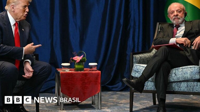Presidente dos EUA Donld Trump sentado ao lado de presidente do Brasil, Luiz Inácio Lula da Silva durante encontro bilateral na cúpula da Associação das Nações do Sudeste Asiático (Asean) realizada em outubro de 2025 em Kuala Lumpur, na Malásia