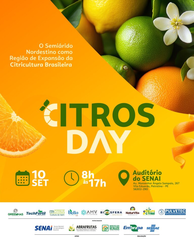 O Citros Day conta ainda com o apoio da Abrafrutas e do Sindicato Rural de Petrolina. Para Laianne Macedo, especialista em Agronegócios do Sebrae/PE, o momento é estratégico para ampliar o debate sobre o potencial dos cítricos na região. “Agricultores familiares e pequenos produtores locais têm investido no plantio e venda de outras culturas, a exemplo dos cítricos. É um movimento ainda recente, sem dados consolidados, mas existe muito mercado para essas culturas. Por isso, é preciso estar atento às demandas do mercado e se preparar para uma produção contínua”, afirma.