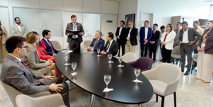 O Tribunal de Contas do Estado do Ceará (TCE-CE) realizou, na manhã desta quarta-feira (07), a sessão extraordinária de posse dos conselheiros eleitos para os cargos de presidente, vice-presidente, corregedor e ouvidor da Corte – biênio 2026-2027. A reunião colegiada ocorreu no gabinete da presidência, como realizada em posses anteriores no TCE Ceará.