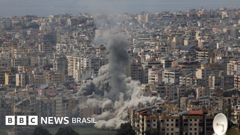 Legenda da foto, Fumaça após ataque israelense nos subúrbios de Beirute, capital do no Líbano