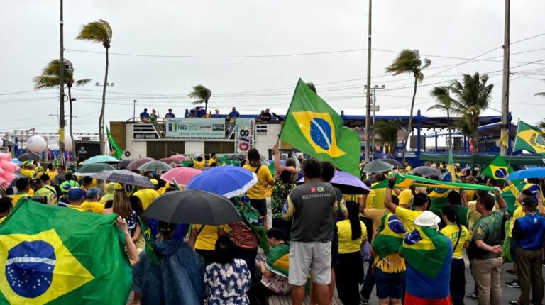 Manifestantes fizeram um protesto em apoio a Jair Bolsonaro (PL), neste domingo (7), no Busto de Tamandaré, em João Pessoa. Vestindo camisas verde e amarelas, eles pediram anistia aos condenados pelos atos golpistas de 8 de janeiro e ao ex-presidente, que está sendo julgado no Supremo Tribunal Federal (STF) por tentativa de golpe de Estado.