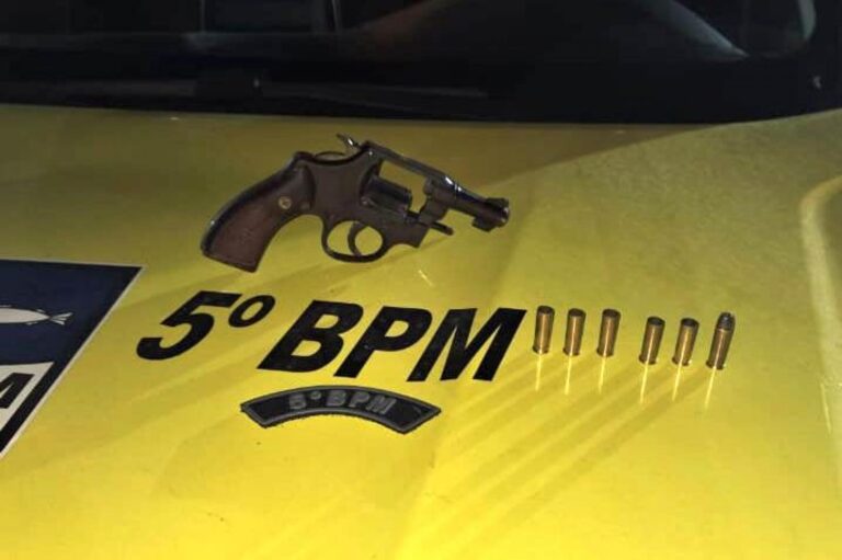 Com o apoio do 12º BPM, foi realizada uma busca minuciosa na área, que resultou na localização do revólver. O garupa admitiu que estava com a arma. Na consulta aos dados da motocicleta, foi constatado que o veículo tinha registro de roubo e furto. Diante disso, o condutor também foi conduzido à delegacia.