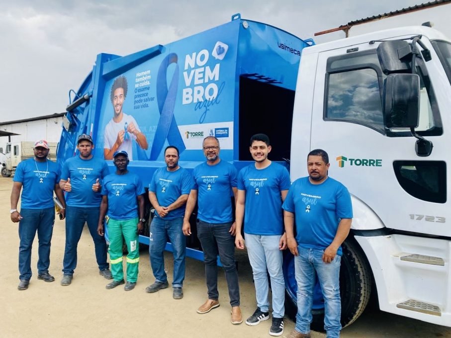 A Secretaria Municipal de Serviços Públicos , em parceria com a Empresa Torre, realizou uma importante ação alusiva ao Novembro Azul, mês dedicado à conscientização e prevenção do câncer de próstata. A iniciativa teve como destaque a apresentação de um caminhão de coleta de lixo totalmente plotado com a identidade visual da campanha, chamando a atenção da população de Vitória da Conquista para a importância da prevenção e do cuidado com a saúde masculina.