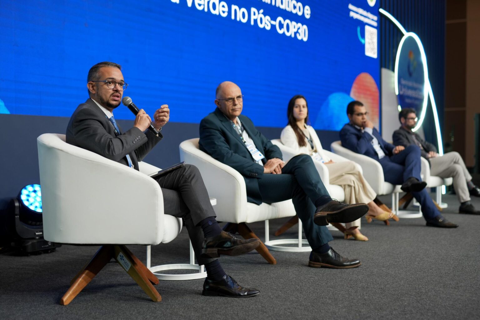 Representando Alagoas, Luiz Neto teve participação de destaque ao moderar dois painéis ao longo da programação. O primeiro deles, o Painel 1, abordou financiamento climático e infraestrutura verde no pós-COP30, reunindo representantes da AFD, KfW, Houer e BNDES.