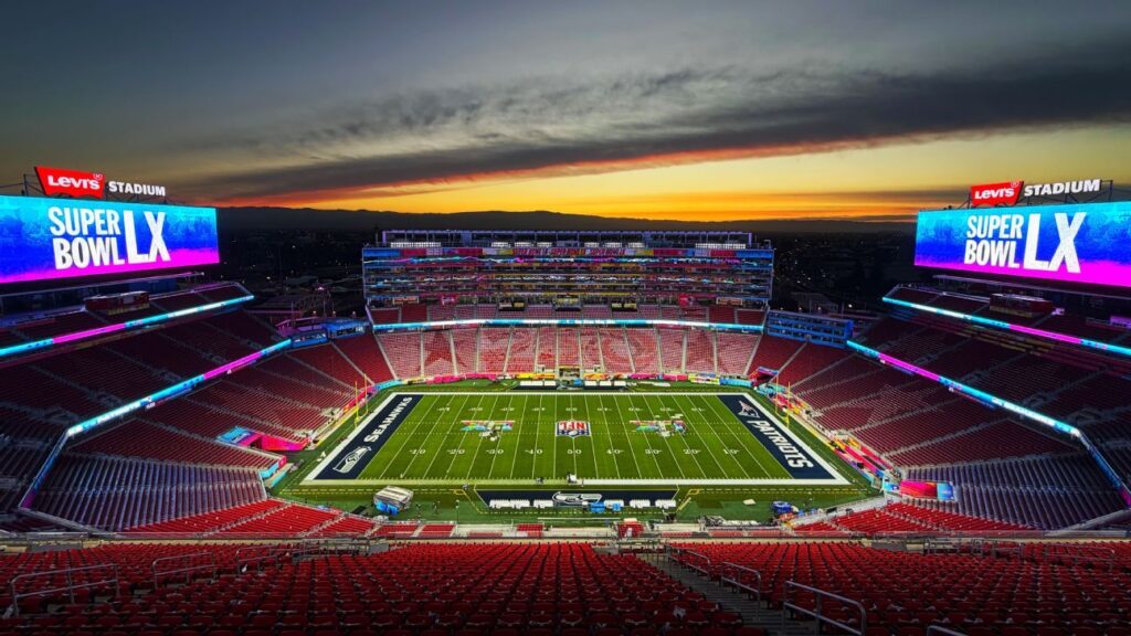 O Super Bowl LX, disputado entre New England Patriots e Seattle Seahawks, terá transmissão ao vivo no plano premium do Disney+, no domingo, dia 8 de fevereiro, às 20h30 (de Brasília), no Levi’s Stadium, casa do San Francisco 49ers, em Santa Clara (Califórnia).
