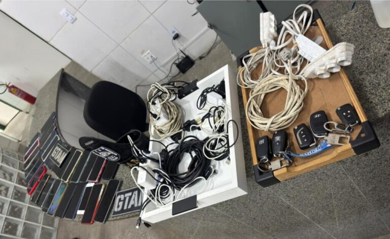 Durante a abordagem, os agentes constataram indícios da prática e solicitaram apoio da Força Tática da Polícia Militar do Ceará. Na operação, foram apreendidos 30 aparelhos celulares, 15 carregadores e outros equipamentos utilizados no suporte das atividades digitais, além de três veículos que também foram recolhidos.