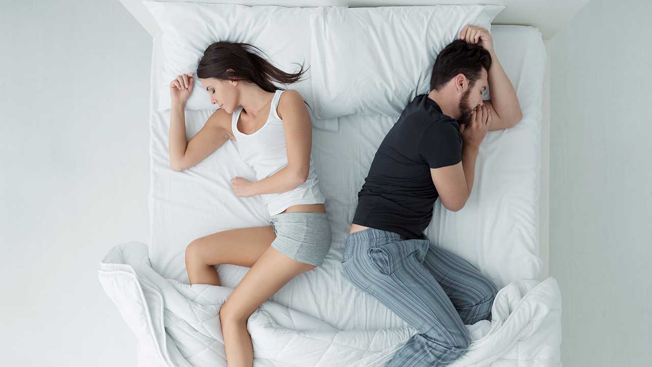 casal dormindo na mesma cama mas de costas um para o outro