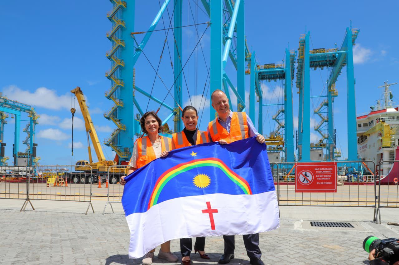 “Hoje é dia de celebração. Quando fomos à Dinamarca visitar a Maersk, firmamos o compromisso de fazer a entrega em maio deste ano, mas precisavam chegar os equipamentos. E chegaram, são os maiores guindastes instalados no Brasil, que acabam de chegar da China e já posicionam Pernambuco como um grande destino de investimentos logísticos para o mundo. O alto investimento e rapidez na logística já antecipam o que só aconteceria nos próximos sete anos. Em maio estaremos aqui novamente, para a entrega de uma etapa útil e, depois, a entrega definitiva em agosto”, discursou a governadora Raquel Lyra.