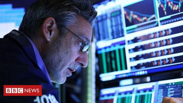 Legenda da foto, A onda de queda das bolsas de valores começou na Ásia, se transferiu para a Europa e tingiu de vermelho os mercados dos Estados Unidos