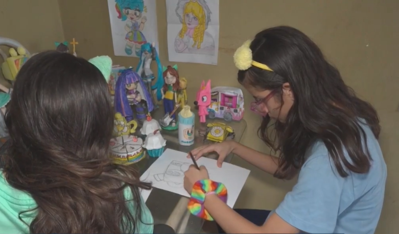 Ainda que estejam apenas no começo da adolescência, Clara e Carolina já afirmam com certeza que querem estudar design no futuro. Os interesses das gêmeas, no entanto, são bem diferentes: uma gosta de desenhar personagens de anime, enquanto a outra opta pela arte sacra.