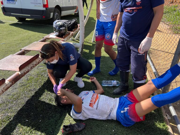 Início » O Jogador do Bahia sofre colisão em campo e recebe atendimento imediato do Samu durante partida no Estádio Edvaldo Flores
