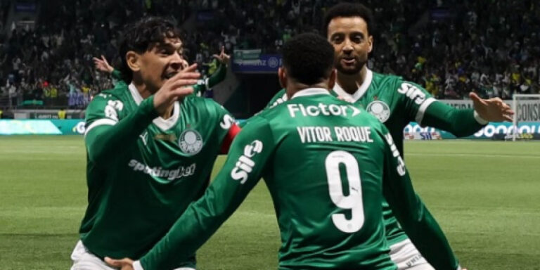 SÃO PAULO – O Palmeiras goleou o Internacional por 4 a 1 na noite deste sábado (13), no Allianz Parque, em São Paulo, pela 23ª rodada do Campeonato Brasileiro. Com atuação dominante e brilho individual de Vitor Roque, autor de três gols, o Verdão conquistou uma vitória contundente diante da torcida e segue firme na briga pela liderança da competição.