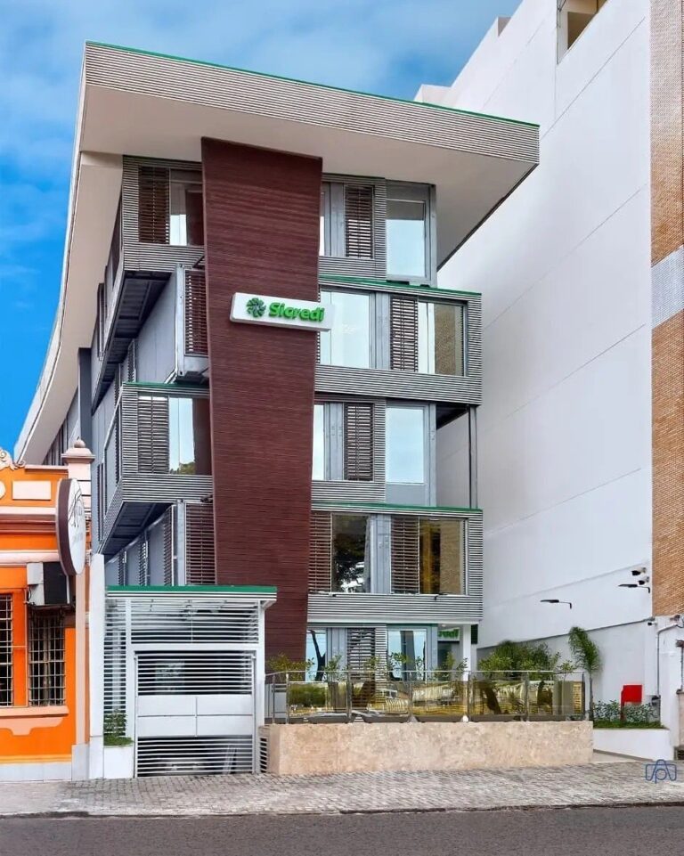 Com cinco andares e cerca de 2 mil metros quadrados de área construída, o edifício abriga a agência e a sede administrativa da cooperativa, reunindo em um mesmo espaço design contemporâneo, eficiência energética e compromisso ambiental. O resultado é uma estrutura que alia economia de recursos e conforto térmico, mantendo a temperatura interna até 4°C abaixo da externa, o que reduz o uso de ar-condicionado e o consumo de energia.