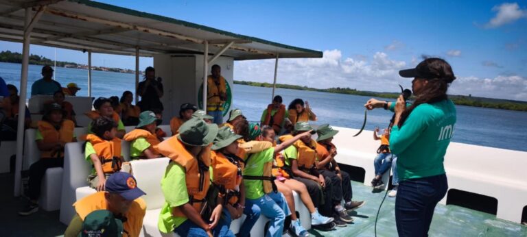 Durante o percurso, que durou pouco mais de uma hora, os pequenos contaram com o apoio de biólogos e técnicos ambientais do IMA, que apresentaram informações sobre a fauna e a flora do Complexo Lagunar Mundaú-Manguaba, destacando a importância da preservação dos ecossistemas e os impactos causados pela poluição nas águas e ilhas da lagoa.