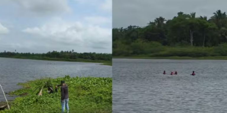 Quatro mergulhadores começaram uma varredura no lago Limpo, em busca de vestígios dos irmãos. Foto: Reprodução/Romarinho Bacabal