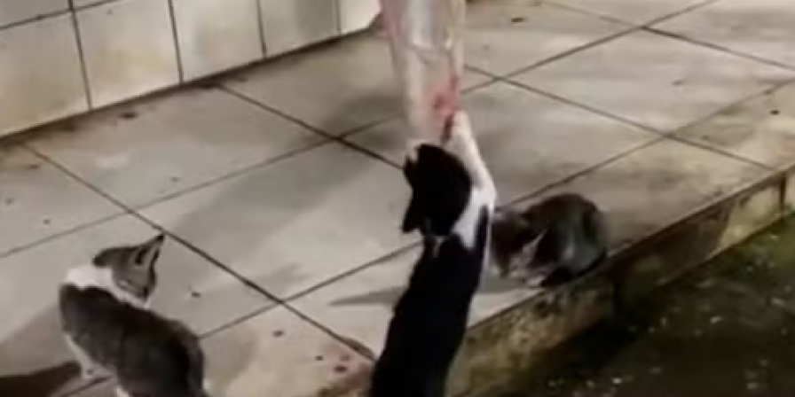 Vídeo mostra gatos comendo carne exposta em mercado…