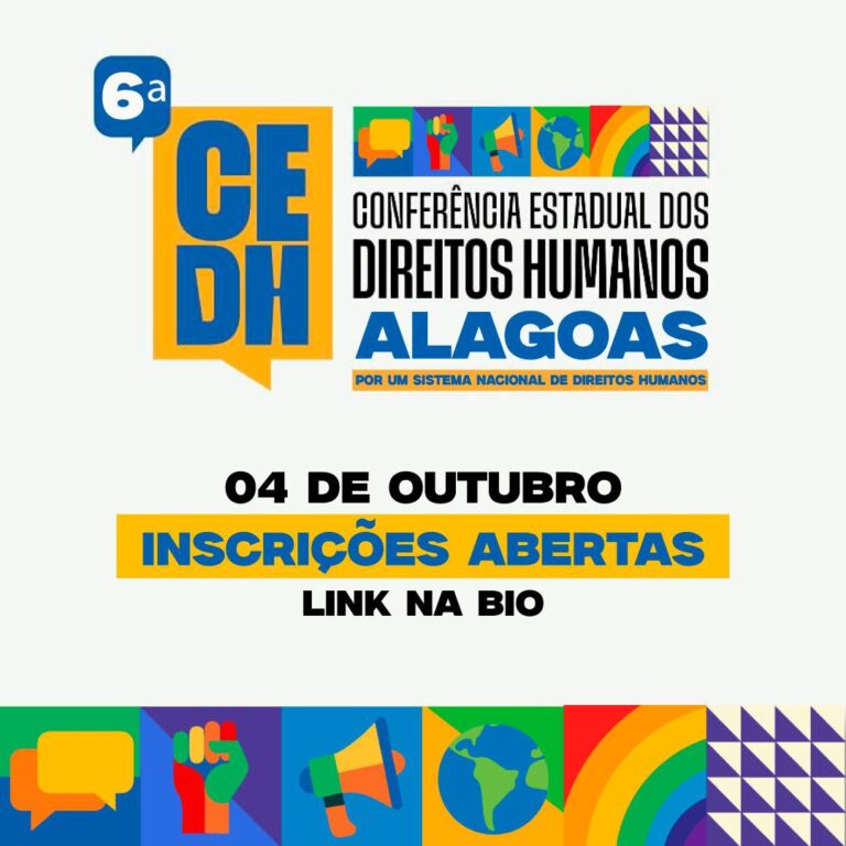 No dia 4 de outubro, Alagoas promove a 6ª Conferência Estadual de Direitos Humanos, um espaço de diálogo plural, democrático e participativo voltado para a construção de propostas que fortaleçam as políticas públicas de direitos humanos no estado e no país. O encontro acontece das 8h30 às 17h, na Escola de Governo (Rua do Livramento, 153 – Centro, Maceió).
