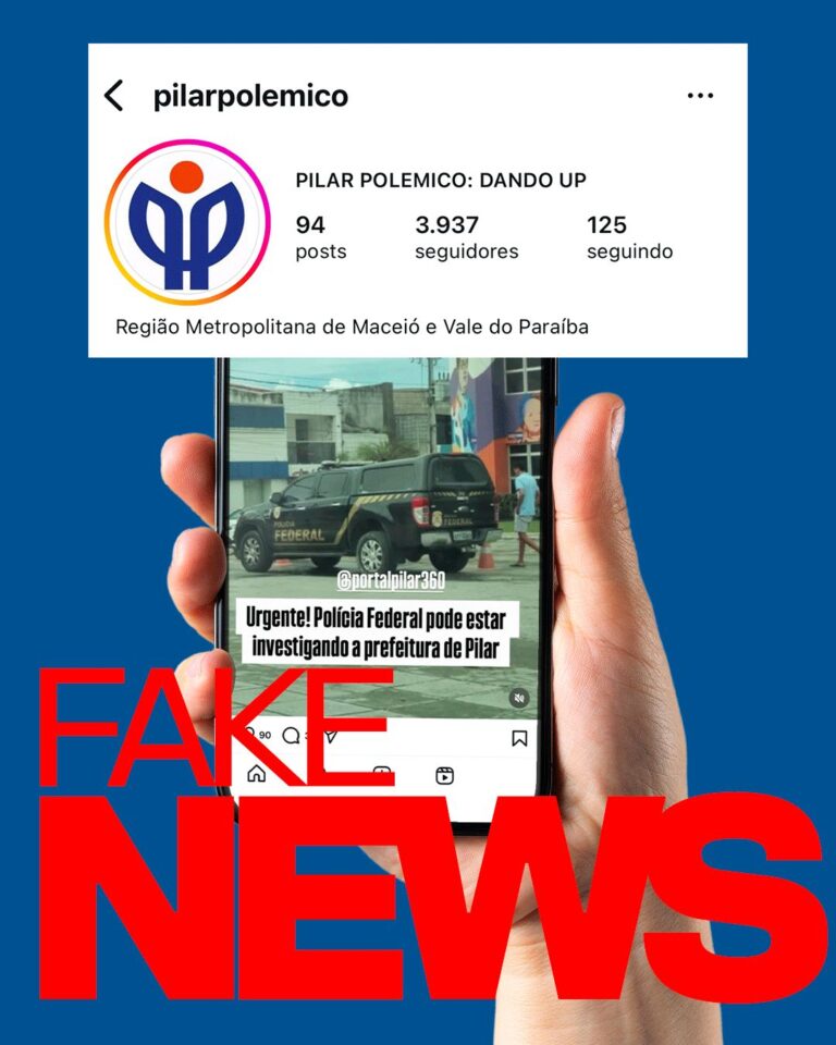 A Prefeitura Municipal de Pilar informa que na manhã desta segunda-feira (16), agentes da Polícia Federal estiveram nas proximidades da sede da Prefeitura unicamente para atendimento na agência da Caixa Econômica Federal, localizada ao lado do prédio público. Não houve qualquer diligência ou ação relacionada à Prefeitura. As informações que circulam nas redes sociais são falsas.