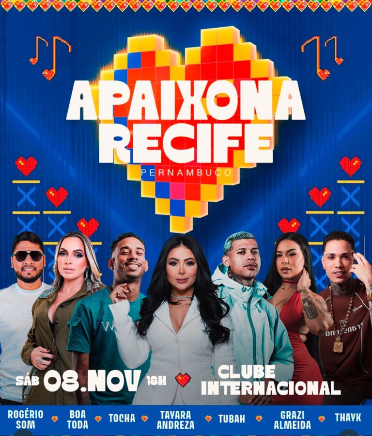 No próximo dia 08 de novembro, o Clube Internacional do Recife será tomado por um clima de emoção, romantismo e muita música popular pernambucana. O evento Apaioxona Recife chega à capital com a proposta de celebrar o brega em sua essência, reunindo no mesmo palco grandes nomes que representam diferentes fases e estilos do gênero, consolidando-se como uma das produções mais aguardadas pelo público.