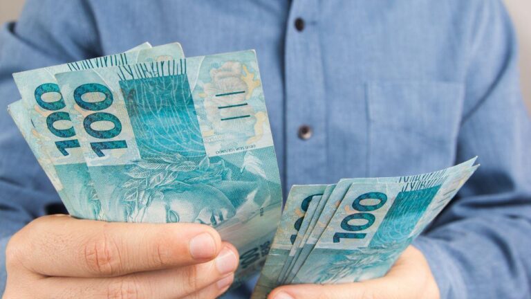 Imagem de uma pessoa contando notas de cem reais