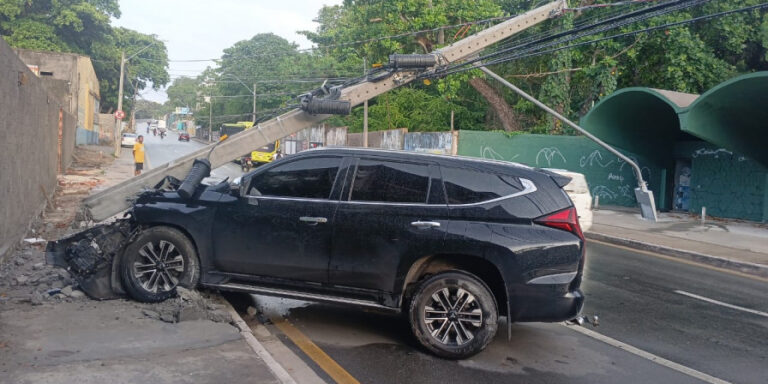 SÃO LUÍS – Um carro derrubou um poste nesta terça-feira de Carnaval, na Avenida João Pessoa, no bairro Anil, em São Luís. O motorista perdeu o controle do veículo em meio à chuva que atingia a Grande São Luís. O acidente aconteceu no sentido João Paulo.