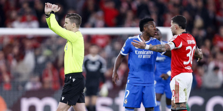 Os jogadores do time português foram tirar satisfações com Vini Jr, que recebeu cartão amarelo do árbitro François Letexier. Quando a confusão parecia encerrada, o brasileiro se dirigiu ao juiz reclamando que foi chamado de “mono”, termo em espanhol para macaco. Ele tinha acabado de discutir com Gianluca Prestianni, do Benfica. As imagens da transmissão de TV mostraram que, em certo momento, o atacante argentino colocou a camisa em direção à boca.