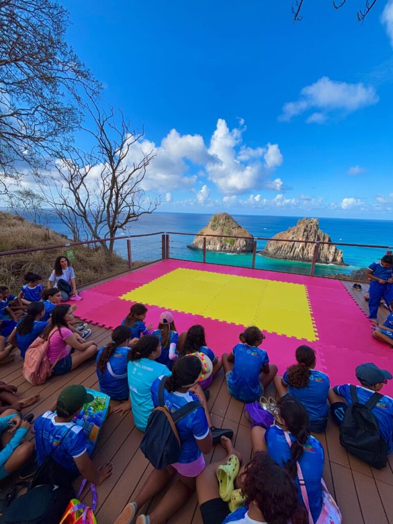 Com os tatames voltados para uma vista extraordinária do Mirante do Sancho, os estudantes do Centro de Formação Esportiva (CFE) de Fernando de Noronha tiveram sua primeira aula externa de uma forma inesquecível. Além das atividades físicas, os jovens tiveram aula de lutas com a participação ilustre da campeã olímpica de Judô, Beatriz Souza. Os centros são uma política pública da Secretaria de Esportes de Pernambuco, em parceria com a Secretaria de Educação e a Administração de Fernando de Noronha.