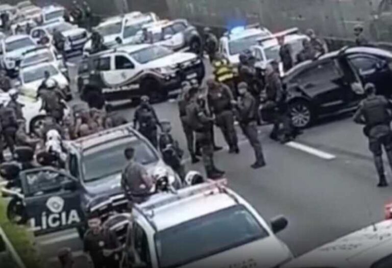 A abordagem ocorreu na Rodovia Padre Manoel da Nóbrega, na divisa entre Mongaguá e Praia Grande. Segundo a Polícia Militar, durante a intervenção houve disparos por parte da equipe policial, em razão do “risco iminente” apresentado pelo suspeito. O policial da reserva acabou sendo baleado e neutralizado.