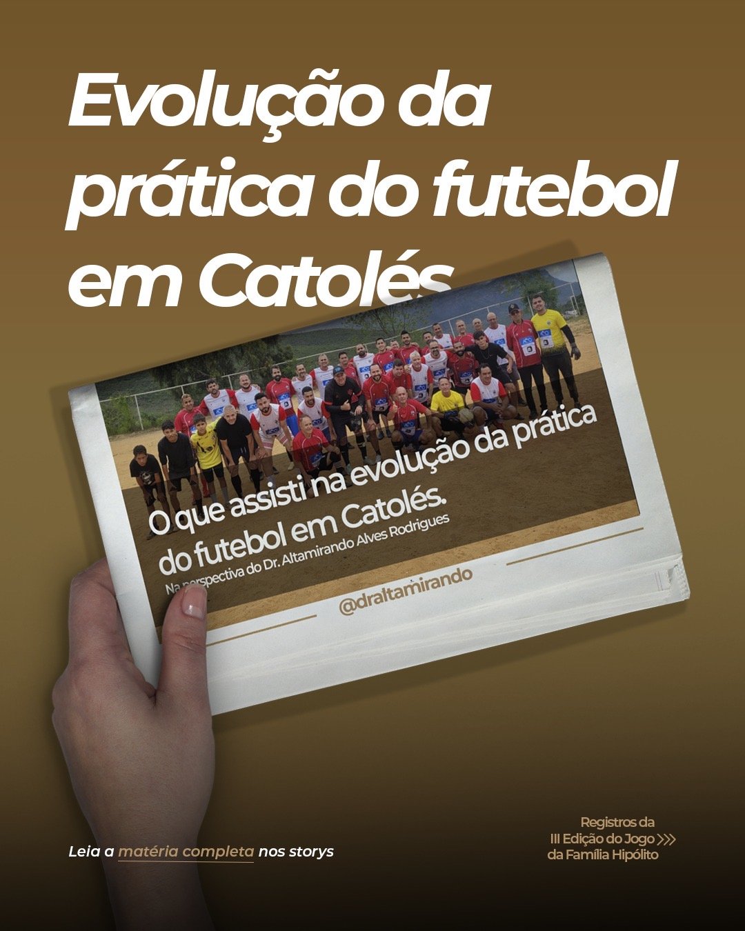 No meio do ano de 2023, meus sobrinhos: Evaldo, Clodoaldo, Washington e João Neto amadureceram a ideia há muito na cabeça dos filhos, outros netos e até bisnetos de João Hipólito Rodrigues, no sentido de se realizar partida de futebol da Família Hipólito, considerando o muito bom futebol praticado por Luis Alberto e Gilson, em campo e Maricélio em quadra de futebol de salão. Os demais filhos: João, Antônio e Ed. E os netos: Ênio, Murilo, Elder, Marcelo, Ró, e Luciano, assumiram protagonismo e eu, Guto, Elvander e Danilo, coadjuvância. A conjunção dessas vontades resultou na realização da I EDIÇÃO do jogo, em 13 de janeiro de 2024, sábado. Diante da presença do número considerável de amigos querendo jogar, não foi possível escalar dois times só com filhos, netos e bisnetos de JOÃO Hipólito.