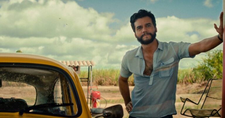 Na cena de abertura de O Agente Secreto, sucedem-se fotografias em preto e branco de astros e estrelas da televisão e do cinema, ao som de Uma noite no Arpège, sucesso de Luis Bandeira e Waldir Calmon da década de 1950. A sequência seguinte tem lugar no posto de gasolina São Luiz, na beira da estrada ladeada pelo canavial e começa com a legenda “Nossa história se passa no Brasil de 1977, uma época cheia de pirraça…” – modo inusitado de definir o período em que a ditadura militar persistia, apesar de estar em curso a chamada “abertura lenta, gradual e segura”. A cena na qual Marcelo (Wagner Moura) chega ao posto dirigindo seu fusca amarelo é um primor de laconismo. Nada é explícito, tudo é insinuado. São oito minutos opostos ao restante de quase todo o filme, no qual prevalecem situações explicadas por meio de diálogos informativos.