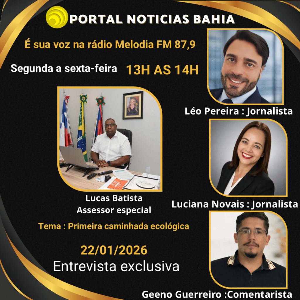 O Portal Notícias Bahia recebe, no próximo dia 22 de janeiro, o assessor especial do governo municipal, Lucas Batista, para uma entrevista especial que terá como tema central a Primeira Caminhada Ecológica da Lagoa das Bateias. A iniciativa integra ações voltadas à preservação ambiental, conscientização ecológica e incentivo à participação da comunidade em práticas sustentáveis.
