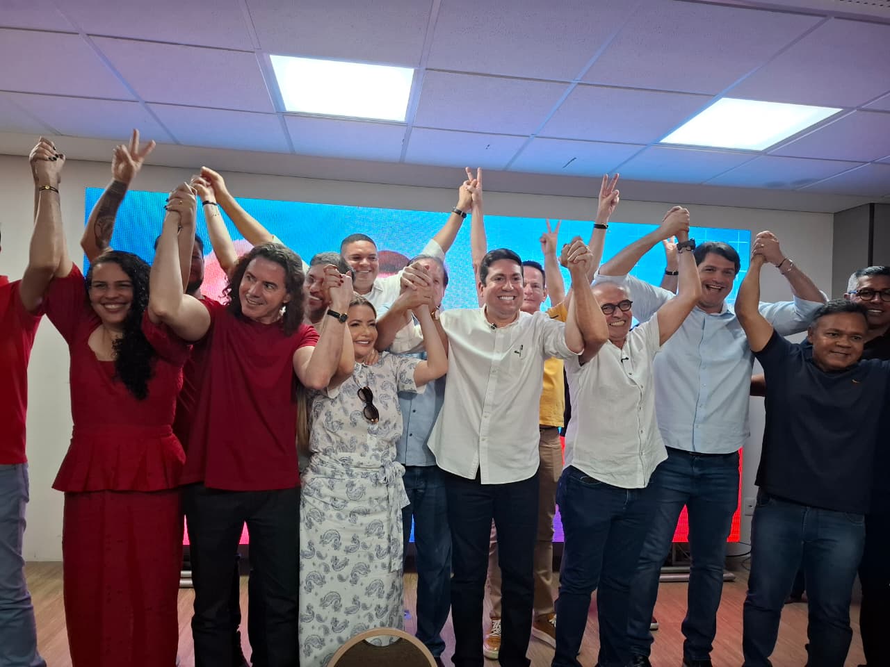 Veneziano participou da entrevista coletiva e foi abraçado, no mesmo palanque, por Cícero, Tacyana e o próprio Felipe. Pela fotografia, parece meio caminho andado…