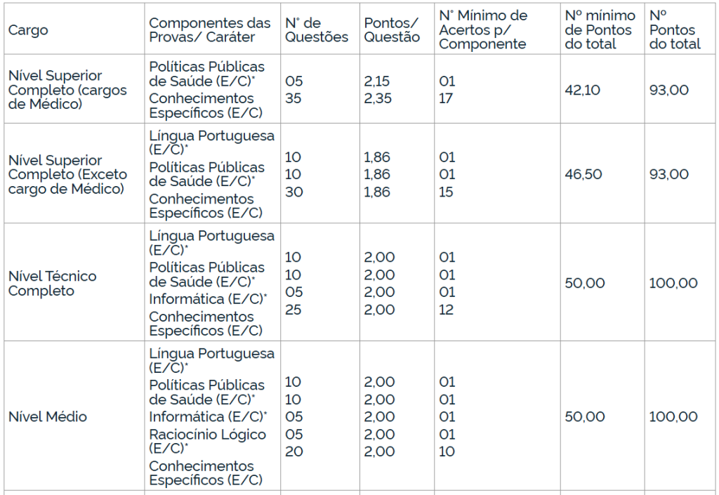 - Prova de Títulos, para os cargos médicos, de caráter classificatório.