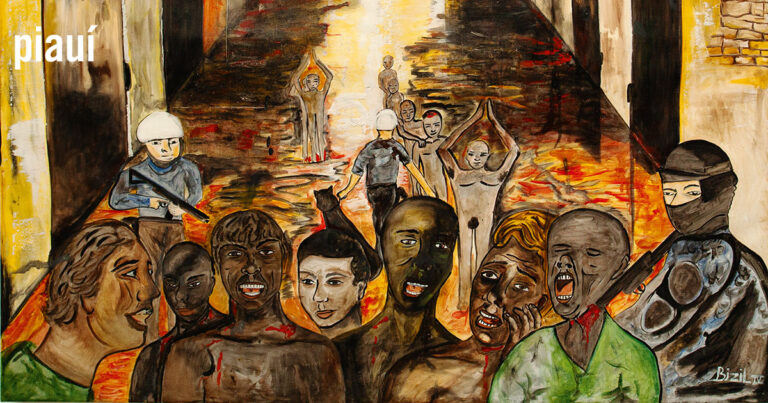 Hoje ele acredita que não escapou por acaso da selvageria no Carandiru. “Saí ileso para impedir que a memória daquela barbárie se apague. A Constituição determina que o Estado ressocialize os presos. A PM não pode simplesmente invadir uma penitenciária e passar fogo.” Desde que alcançou o regime semiaberto, em 2000, e se regenerou, o sobrevivente de 58 anos pinta o que testemunhou no dia 2 de outubro de 1992. Na edição deste mês, a piauí publica um portfólio com seis telas de Bizil que retratam o massacre.