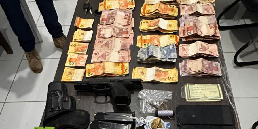 No imóvel, também foram apreendidas porções de crack, maconha e cocaína, uma balança de precisão, dinheiro em espécie, vários celulares e uma motocicleta com registro de roubo ou furto.