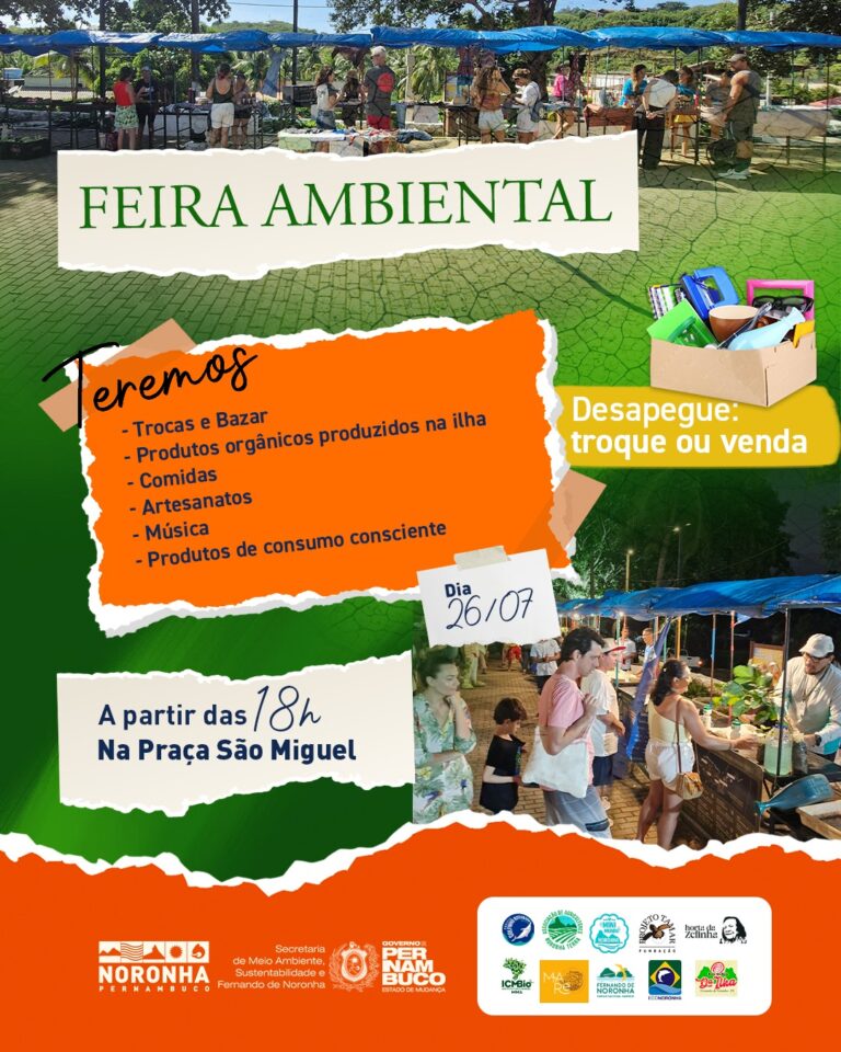 A Administração de Fernando de Noronha, por meio da Gerência de Meio Ambiente, em parceria com o Projeto Golfinho Rotador, realizará neste sábado (26), a Feira Ambiental. O evento acontecerá na Praça São Miguel, localizada na Vila dos Remédios, a partir das 18h.