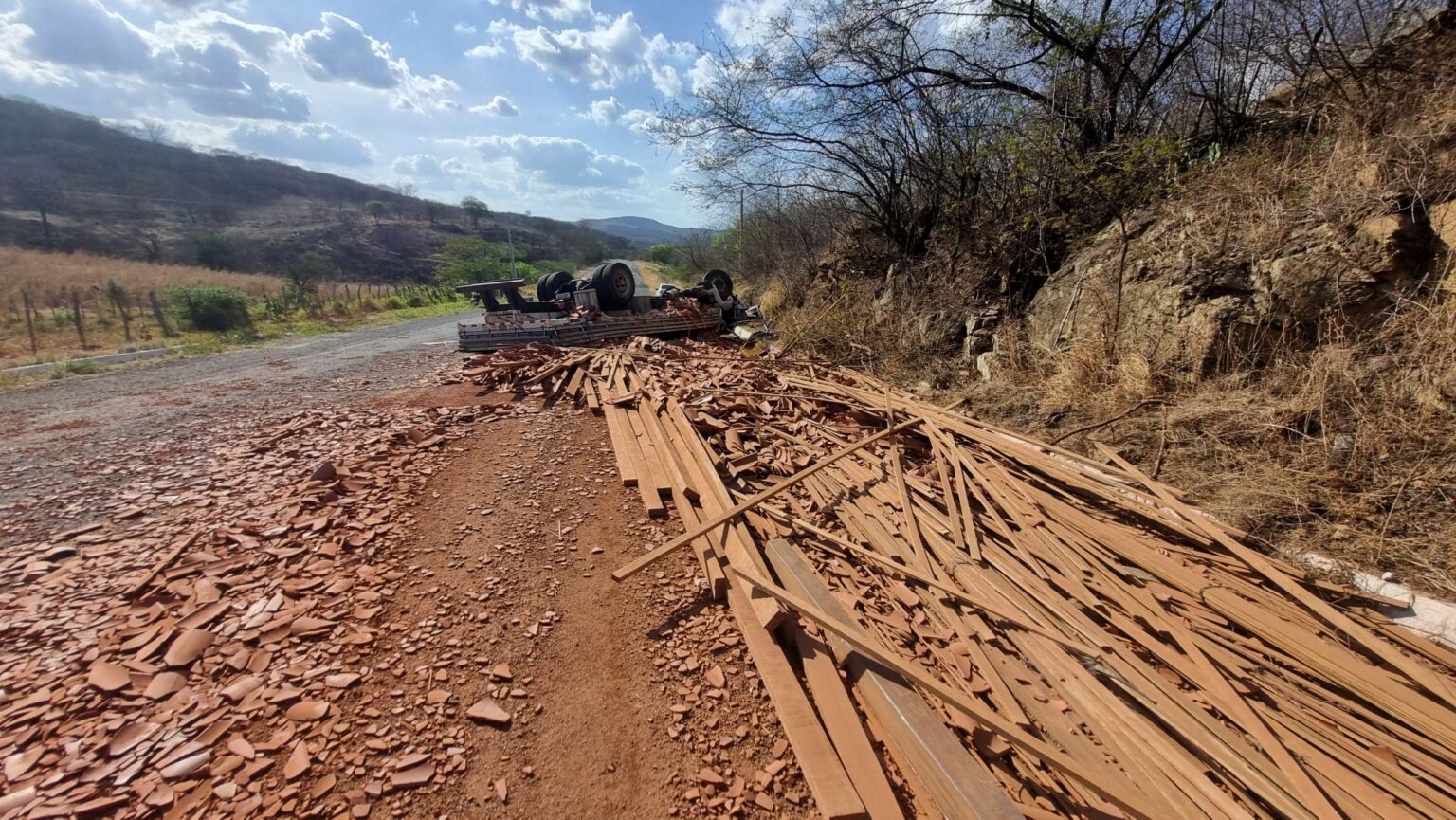 Um acidente foi registrado na tarde desta quarta-feira (22), na estrada que liga Pedra Branca ao distrito de Santa Cruz do Banabuiú. Um caminhão carregado com material de construção acabou tombando nas proximidades do Sítio Olho d’Água do Chão, zona rural do município.