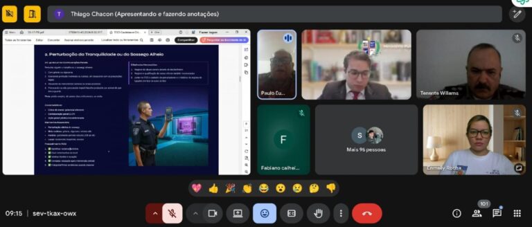 A Polícia Militar de Alagoas (PMAL) realizou, na manhã de quarta-feira (23), uma capacitação online com o tema “A lavratura de Termo Circunstanciado de Ocorrência nos casos de usuário de entorpecentes e suas nuances”, conduzida pelo promotor de Justiça Thiago Chacon. O evento contou com a participação de 102 militares de todo o estado, entre oficiais e praças, promovendo troca de experiências, esclarecimentos práticos e compartilhamento de estratégias.