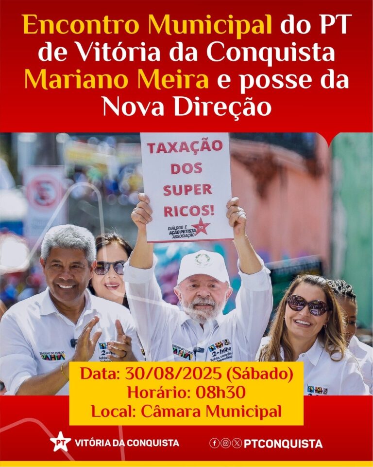 O encontro ocorrerá na Câmara Municipal de Vitória da Conquista, reforçando o compromisso do partido com a participação popular e a presença ativa da militância em todos os espaços institucionais.