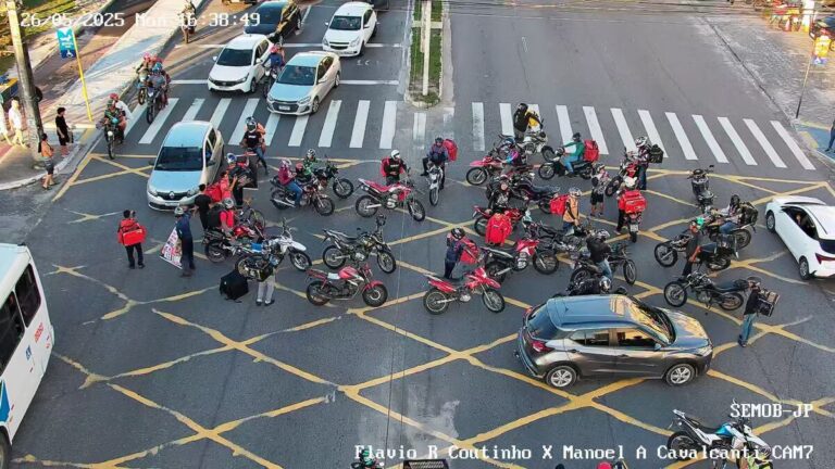 Motoboys e família de Kelton Marques fazem protesto por liberação de Ruan Macário da cadeia – Foto: Semob-JP.