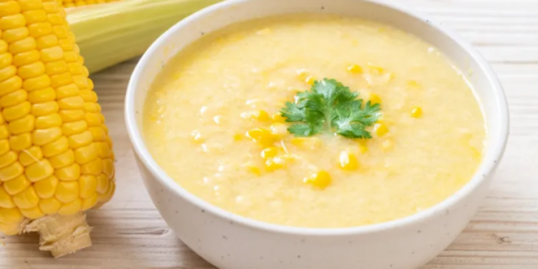 - Na panela, doure o alho em um fio de óleo. Adicione o creme de milho com leite.