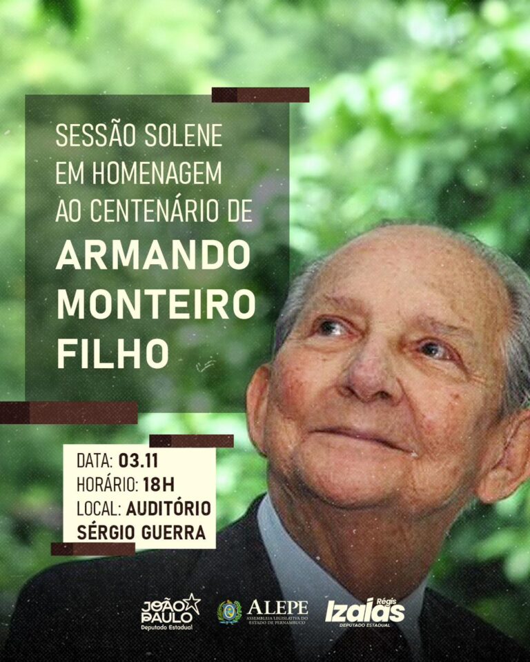 A Assembleia Legislativa de Pernambuco (Alepe) realizará, na próxima segunda-feira, 3 de novembro, às 18h, uma Sessão Solene em homenagem ao centenário de nascimento de Armando Monteiro Filho (in memoriam), ex-deputado, ex-ministro da Agricultura no Governo João Goulart, pai do ex-senador Armando Monteiro Neto e do presidente do Grupo EQM, Eduardo Monteiro.